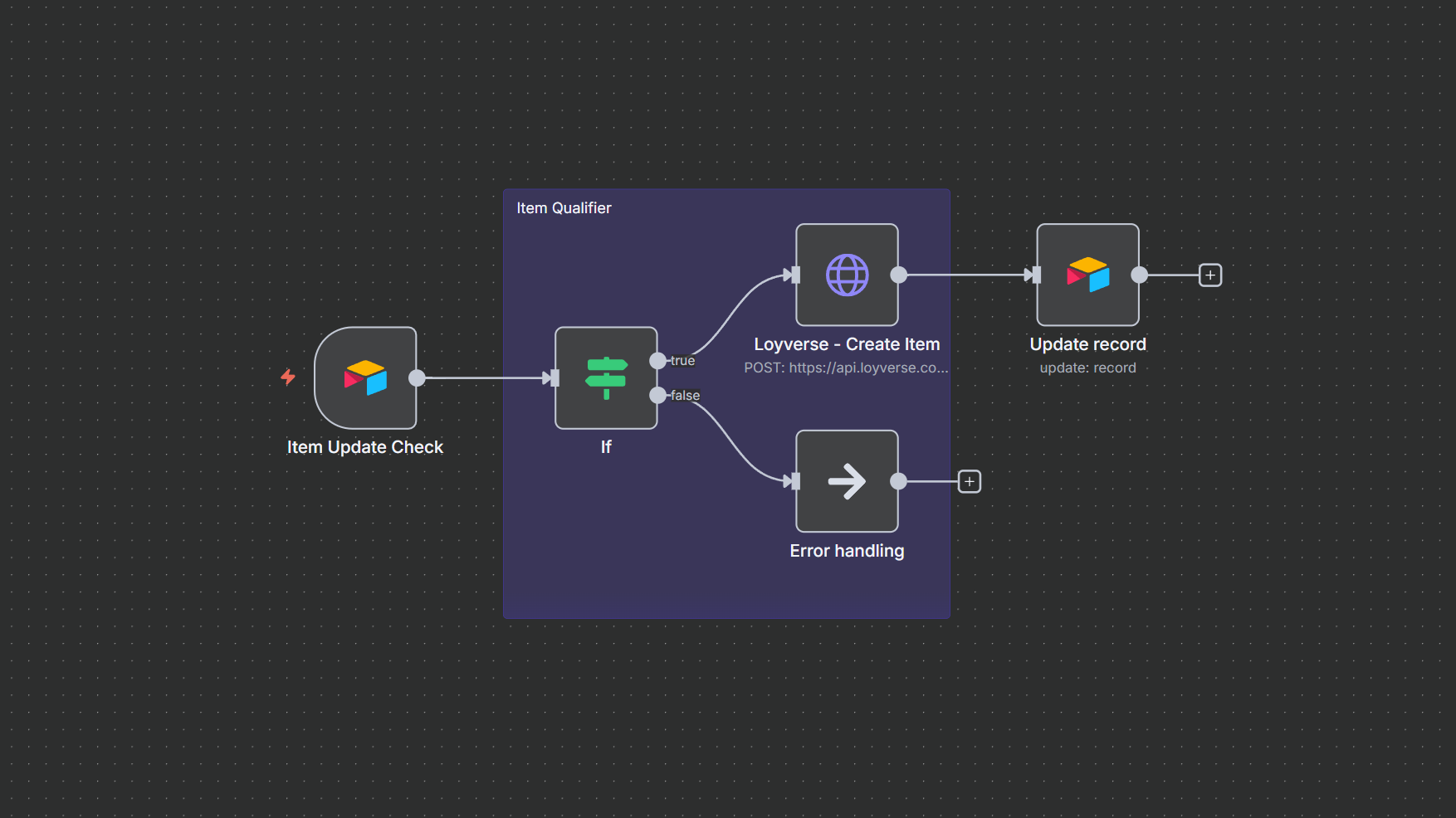 • Solution: Syncronize Airtable items that are complete and ready for import with Loyverse. Using n8n, Winmerfx was able to push qualified inventory items straight into the Retail Store’s POS system. This gets rid of the repetetive and potentially time-wasting export and import of the items manually.